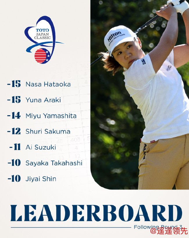日本选手继续霸占领先榜,只有申智爱(韩国)一个人进入前六位。追求日巡30胜,华体会体育app申智爱打出73杆,从榜首位置跌下来,与高桥彩华(Sayaka Takahashi,71杆)并列位于第六位,三轮成绩为206杆,低于标准杆10杆。