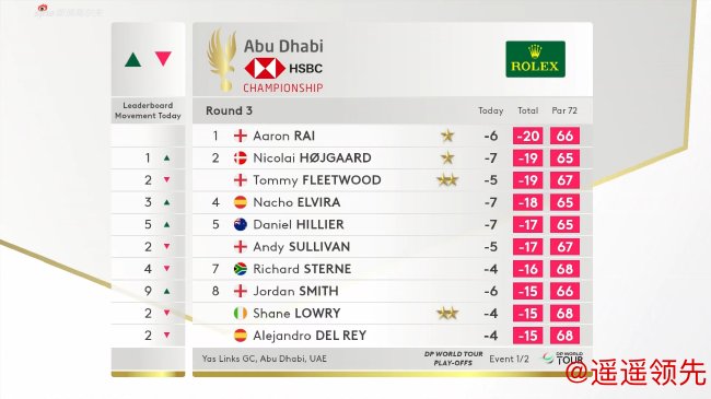 迪拜竞赛排名第一位的麦克罗伊抓到7只小鸟,前九洞4只小鸟全部在10英尺之内,10号洞推入16英尺小鸟推,下一个洞推入19英尺小鸟推,然后收官洞一切一推拿下死鸟。北爱尔兰人在14号洞丢了一杆,打出66杆,排名上升到并列12位,三轮成绩为202杆(68-68-66),低于标准杆14杆。